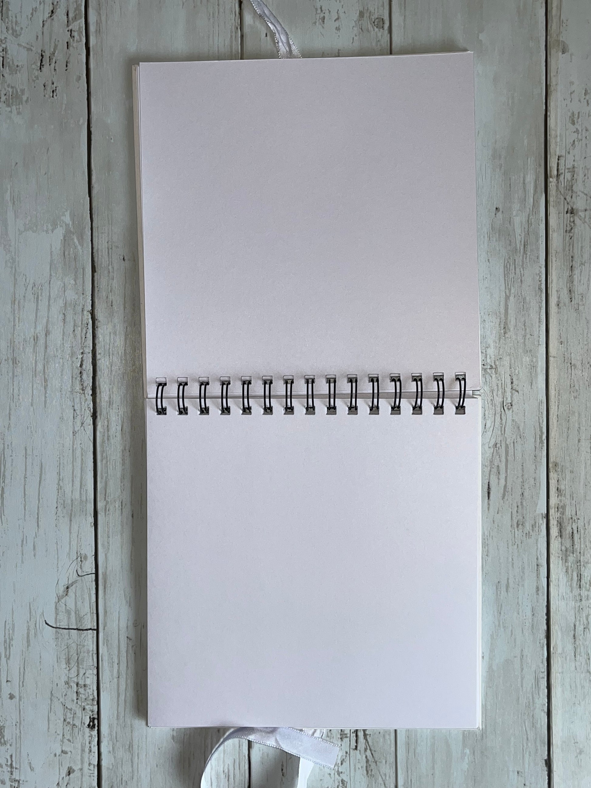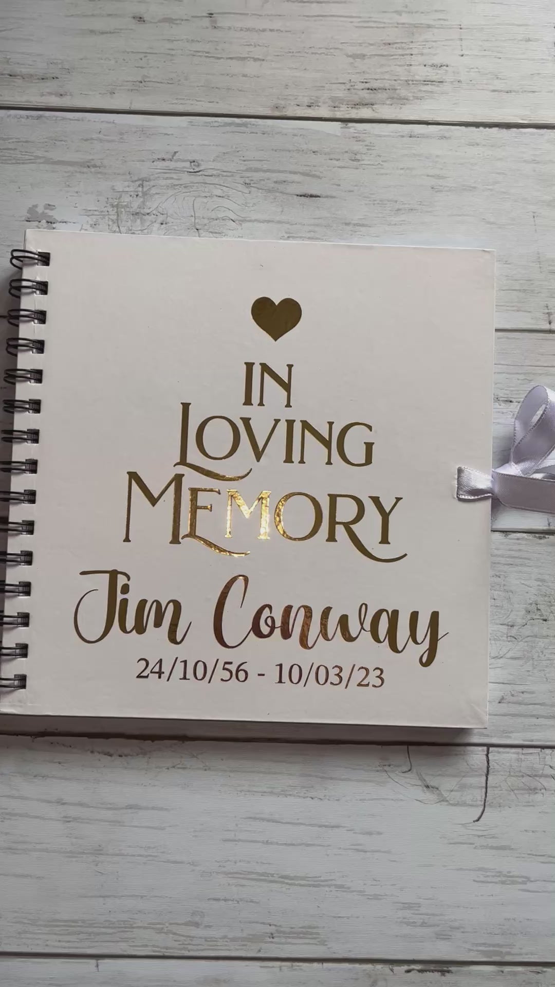 A Personalised White hardback condolence scrapbook/ memory book which can be used to record memories of a loved one or use the pages to create a scrapbook of you and your loved one. The pages are plain white so you can capture all your favourite memories and photos perfectly.